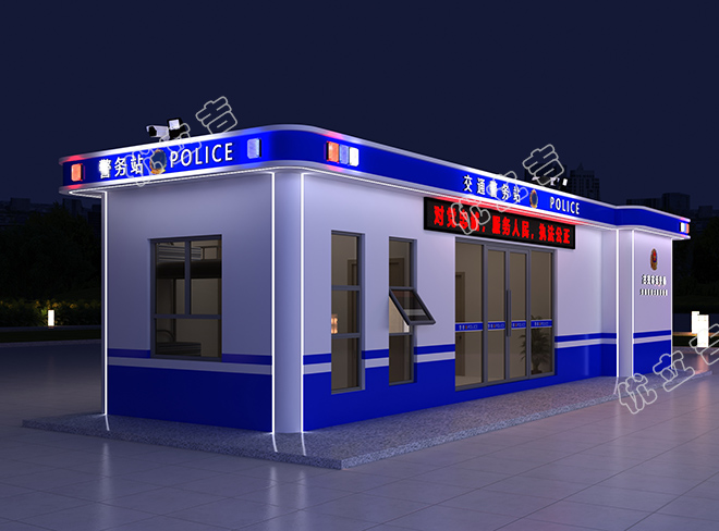 产品优势及特点:放在哪里领导和市民都欢迎!可移动换地方使用、造价低、空间合理、保温隔热又隔音、性价比高、款式新潮美观、新建速度快、耐用寿命长、临建手续简单、审批容易快、智能环保节能、功能先进实用、占地面积少、质量稳定可靠、警务执勤联勤、现场纠违、警事宣传等等;具有目前其他产品无法代替的各种优势,深受全国各地用户的选择。
