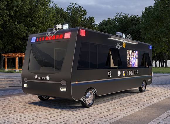 主要构成材料和配置:全部采用国标材料;热镀锌钢材结实龙骨(客车或房车底盘)、外墙美观干挂墙板(四明治车体)、防火保温隔热板、内墙防撞金刚护墙板、地面耐磨磁砖(木地板)、铝板吊顶、断桥铝真空门窗、彩色LED屏、四路监控摄像机、网络设施、喊话喇叭、石墨烯电地暖、空调、爆闪灯、办公家具、警用装备柜、各种警标识牌、巡逻无人机巢等等。