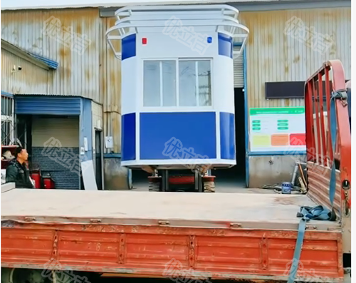 客户在我公司网购的移动治安岗亭,正在装车发货。工厂直供价优,我们坚持用品质说话:钢材加厚加固,抗压耐用;环保油漆多层喷涂,防锈防腐更持久;门窗采用彩铝材质,密封隔音又美观;地面铺设高强度塑胶地板,耐磨防滑,经得起高频踩踏;每一处细节精工细作,接缝平整、线条流畅,兼顾实用与颜值。